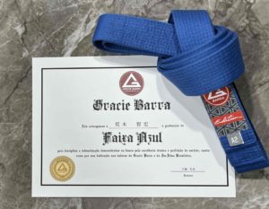 今から約20年前に、パラエストラの中井祐樹先生より頂いた青帯でしたが、 ブラジリアン柔術をグレ